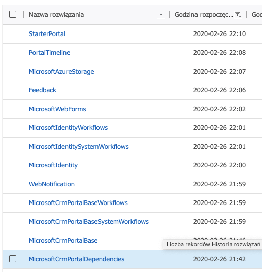 Wiele nowych aplikacji (głównie tzw. first party apps, a więc tych Microsoft’owych) może być teraz instalowanych przez mniej lub bardziej świadomych użytkowników Dynamics 365 (CRM). Większość prosto z nowego interfejsu administracyjnego Power Apps poprzez „Dodaj aplikację”. A później ktoś bardziej świadomy, albo ktoś mający zarządzać środowiskiem, wchodzi w listę rozwiązań i widzi… 37 nowych rozwiązań (solutions) dla jednej nowozainstalowyanej aplikacji (w tym moich ulubionych msdynce_(…)_patch i msdyn_costam_anchor) i dziwi się kto i po co je zainstalował.